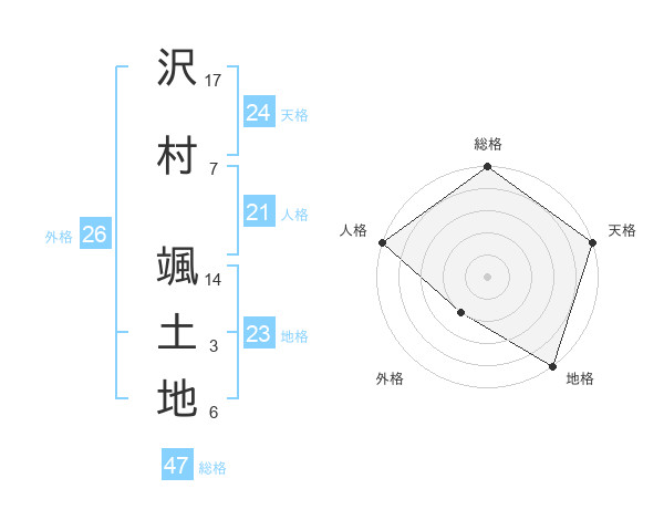 沢村 颯土地さんを姓名の画数から五運を鑑定
