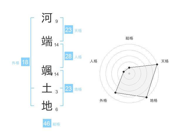 河端 颯土地さんの総格は46画の1点!