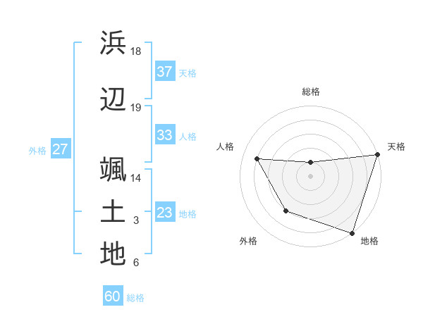 浜辺 颯土地さんの総格は60画の1点!