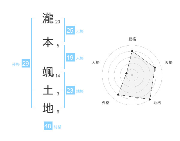 瀧本 颯土地さんを姓名の画数から五運を鑑定