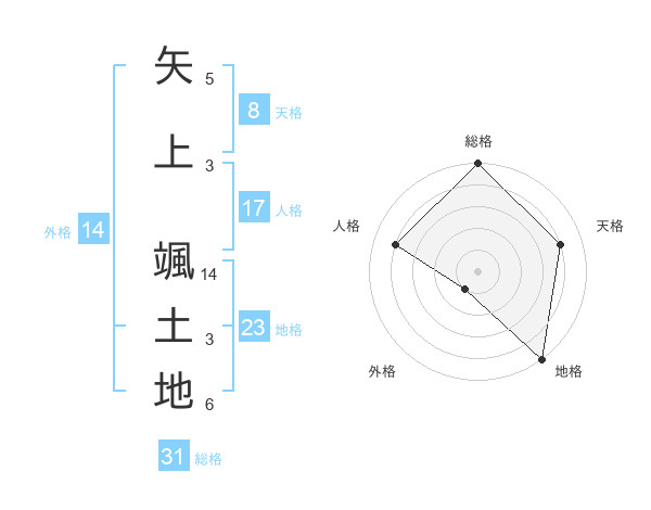 矢上 颯土地さんを姓名の画数から五運を鑑定