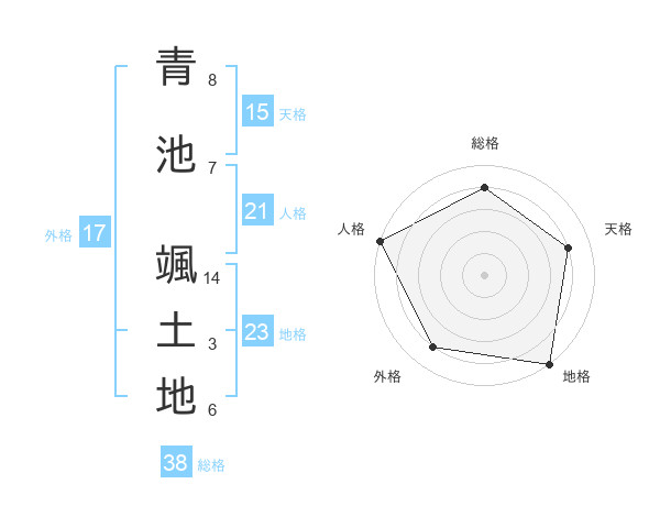 青池 颯土地さんの総格は38画の4点!