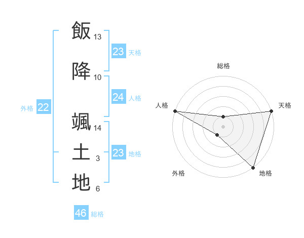 飯降 颯土地さんの総格は46画の1点!