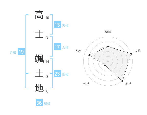 高士 颯土地さんの天格は13画の5点!