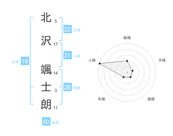 北沢 颯士朗さんを姓名の画数から五運を鑑定