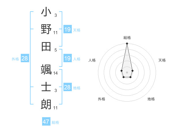 小野田 颯士朗さんを姓名の画数から五運を鑑定
