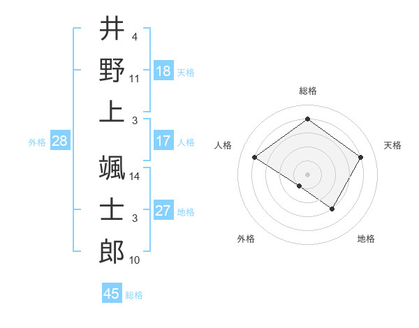 井野上 颯士郎さんを姓名の画数から五運を鑑定