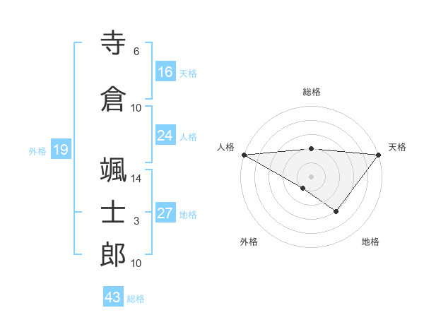 寺倉 颯士郎さんの総格は43画の2点!