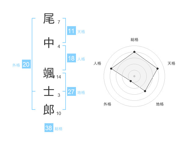尾中 颯士郎さんを姓名の画数から五運を鑑定