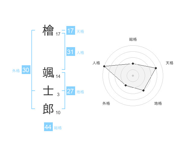 檜 颯士郎さんを姓名の画数から五運を鑑定