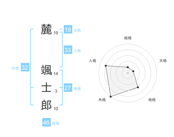 麓 颯士郎さんの外格は32画の5点!