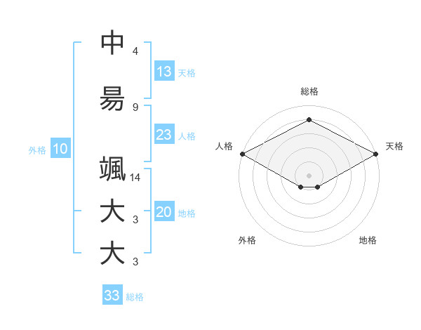 中昜 颯大大さんの総格は33画の4点!
