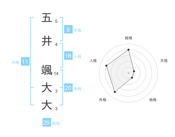 五井 颯大大さんの総格は29画の4点!