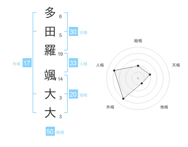 多田羅 颯大大さんを姓名の画数から五運を鑑定
