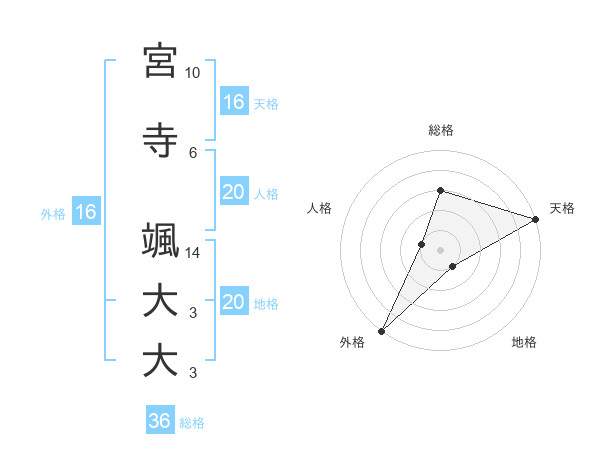 宮寺 颯大大さんの天格は16画の5点!