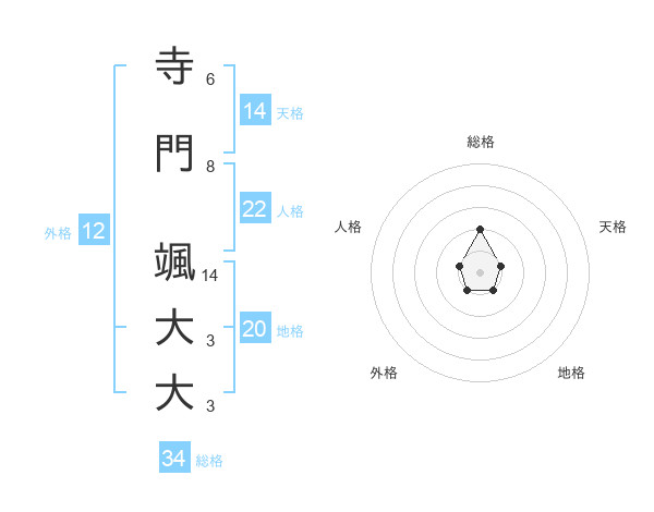 寺門 颯大大さんを姓名の画数から五運を鑑定