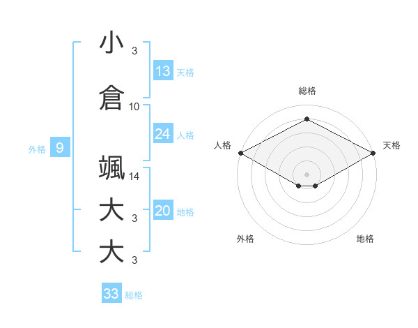 小倉 颯大大さんを姓名の画数から五運を鑑定