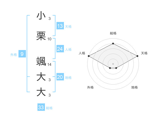 小栗 颯大大さんを姓名の画数から五運を鑑定