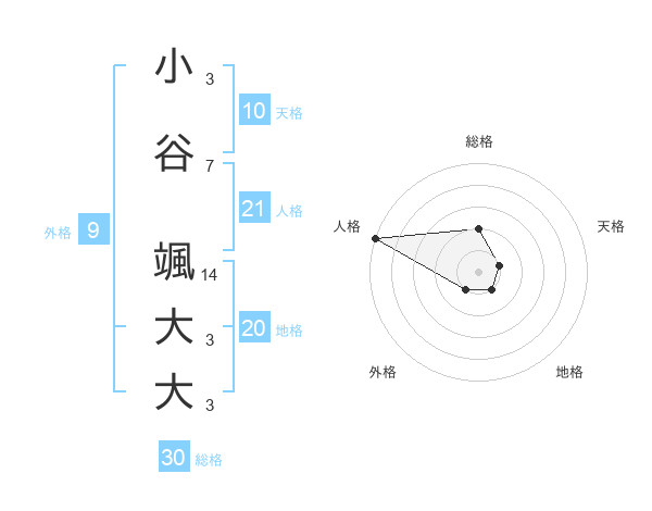 小谷 颯大大さんを姓名の画数から五運を鑑定