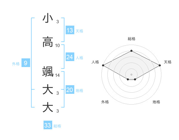 小高 颯大大さんを姓名の画数から五運を鑑定