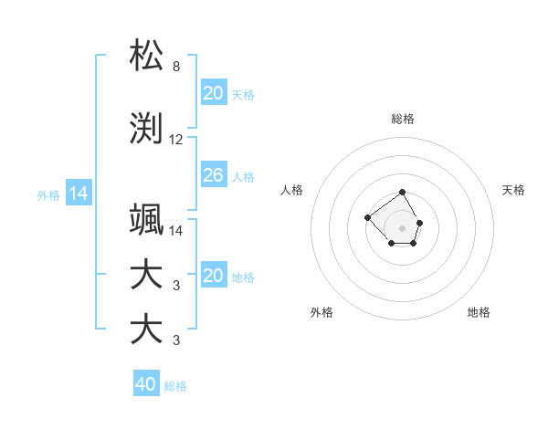 松渕 颯大大さんを姓名の画数から五運を鑑定