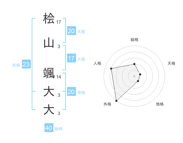 桧山 颯大大さんの外格は23画の5点!