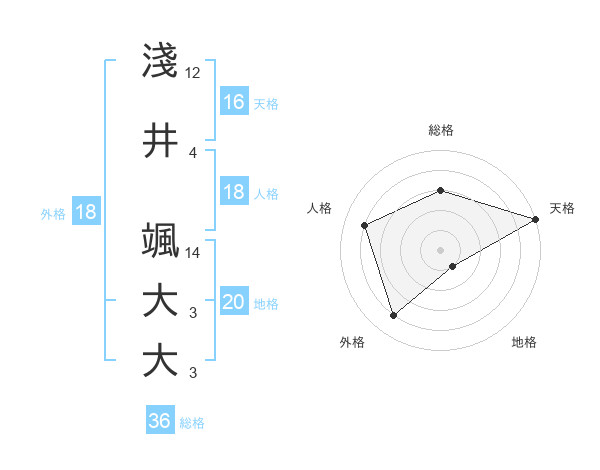 淺井 颯大大さんの天格は16画の5点!