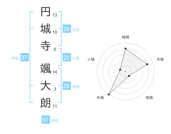円城寺 颯大朗さんの総格は57画の4点!