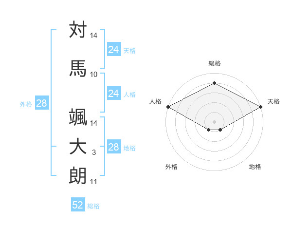 対馬 颯大朗さんの天格は24画の5点!