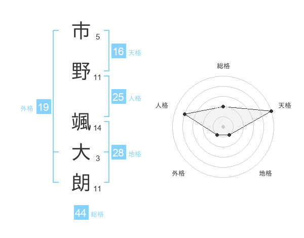 市野 颯大朗さんを姓名の画数から五運を鑑定