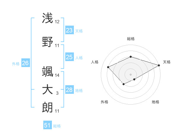 浅野 颯大朗さんを姓名の画数から五運を鑑定