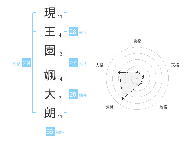 現王園 颯大朗さんを姓名の画数から五運を鑑定