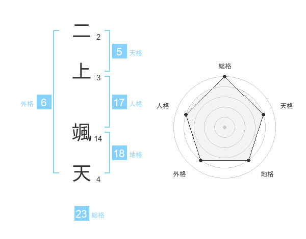 二上 颯天さんの総格は23画の5点!