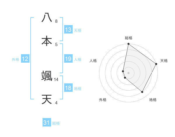 八本 颯天さんの天格は13画の5点!