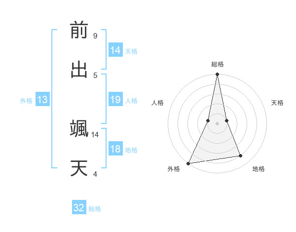 前出 颯天さんの総格は32画の5点!