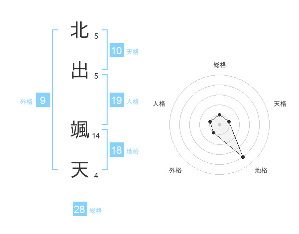 北出 颯天さんの地格は18画の4点!