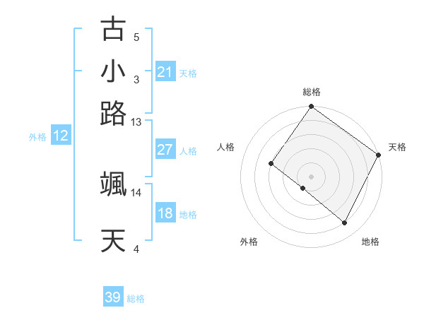 古小路 颯天さんの総格は39画の5点!