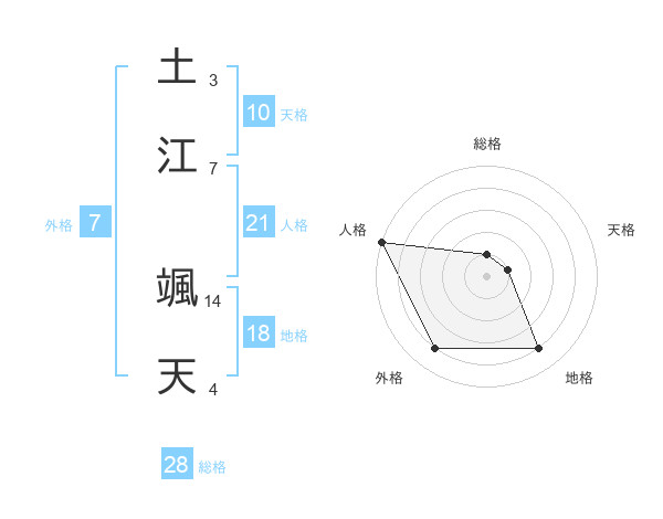 土江 颯天さんの人格は21画の5点!