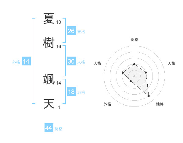 夏樹 颯天さんの総格は44画の2点!