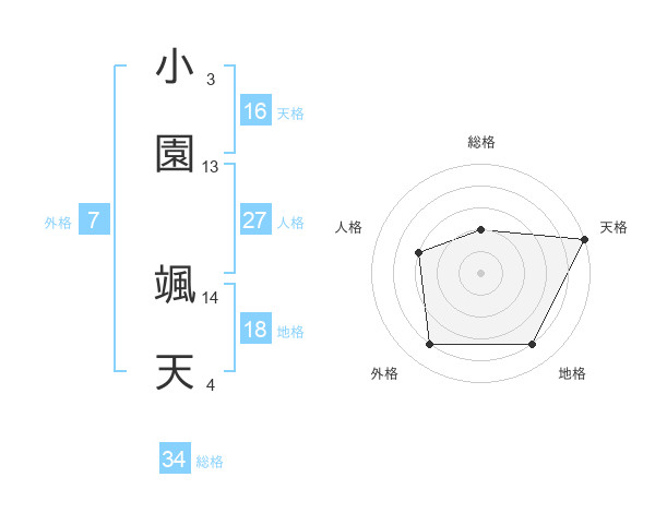 小園 颯天さんの天格は16画の5点!