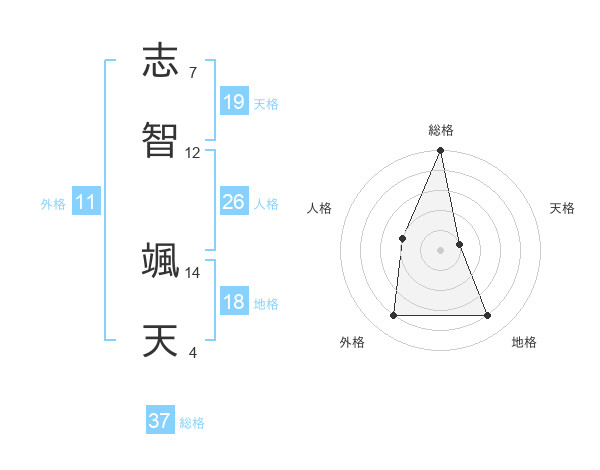 志智 颯天さんの総格は37画の5点!