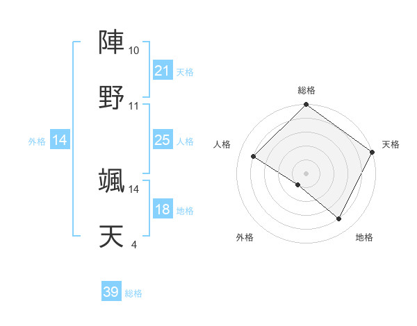陣野 颯天さんを姓名の画数から五運を鑑定