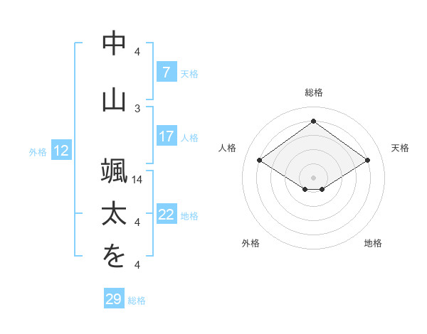 中山 颯太をさんを姓名の画数から五運を鑑定
