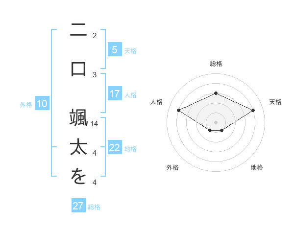 二口 颯太をさんを姓名の画数から五運を鑑定