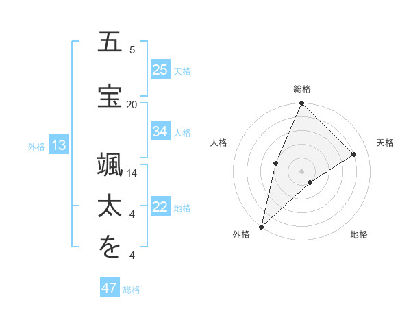 五宝 颯太をさんの総格は47画の5点!