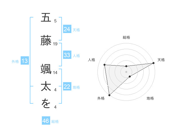 五藤 颯太をさんを姓名の画数から五運を鑑定