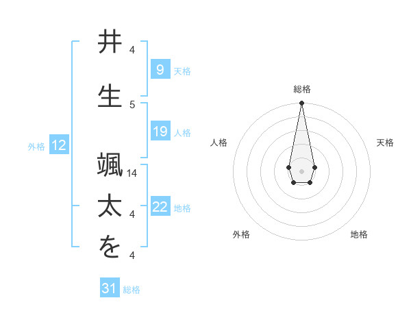 井生 颯太をさんを姓名の画数から五運を鑑定