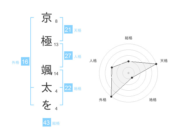 京極 颯太をさんを姓名の画数から五運を鑑定