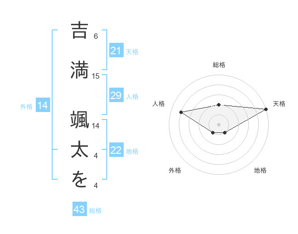 吉満 颯太をさんの天格は21画の5点!
