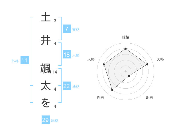 土井 颯太をさんの地格は22画の1点!